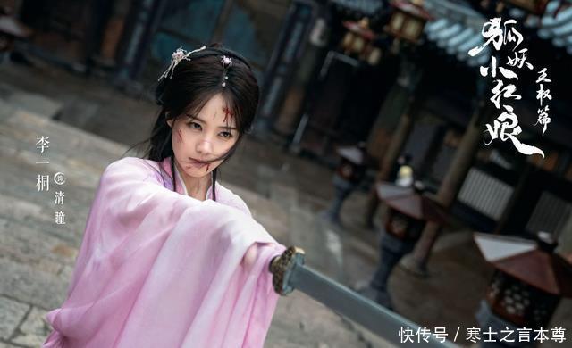 清瞳(李一桐饰)一开始是被毒娘子派来的间谍,却在看到王权富贵独自在剑冢练剑的孤独身影时,忍不住用蛛丝帮他包扎伤口。